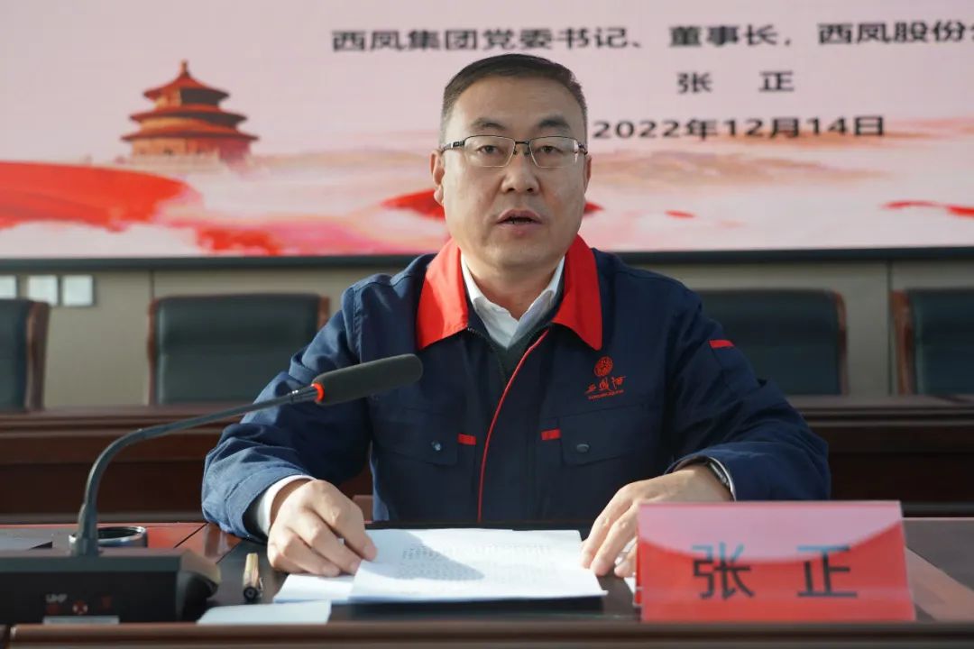 张正强调,公司全体党员干部职工一要深刻领悟党的二十大的重大历史意义,迅速掀起学习宣传贯彻热潮。要按照集团党委要求,深刻领悟“两个确立”,增强“四个意识”、坚定“四个自信”、做到“两个维护”。自觉把思想和行动统一到党的二十大精神上来,为实现党的二十大确立的宏伟目标作出新的更大的贡献。二要强化作风建设,推动党的二十大精神学习贯彻走深走实。要立足企业实际,围绕党员干部职工岗位职责,自觉做到“十个坚持、十个反对”,树立“一盘棋”思想,以最优作风激励干部奋发作为,全力推动党的二十大精神落地见效。三要以学促做、融会贯通,促进各项工作取得新突破。要扩大学习宣传覆盖面,持续营造学习宣传贯彻党的二十大精神的浓厚氛围,强化执行力、提升工作效率,切实把学习贯彻的成果体现到各项工作中。四要圆满完成年度各项工作任务,以实际行动检验学习贯彻党的二十大精神的成效。各部门要紧盯年度目标任务,从党的二十大精神中找思路、找方法、找对策、找举措,坚决克服“一般化、差不多、过得去”的思想,坚持问题导向,全力攻坚克难,切实把党的二十大精神落实到项目建设、品质提升、现代管理、市场拓展、企业改革、品牌建设上,奋力实现西凤事业大发展。