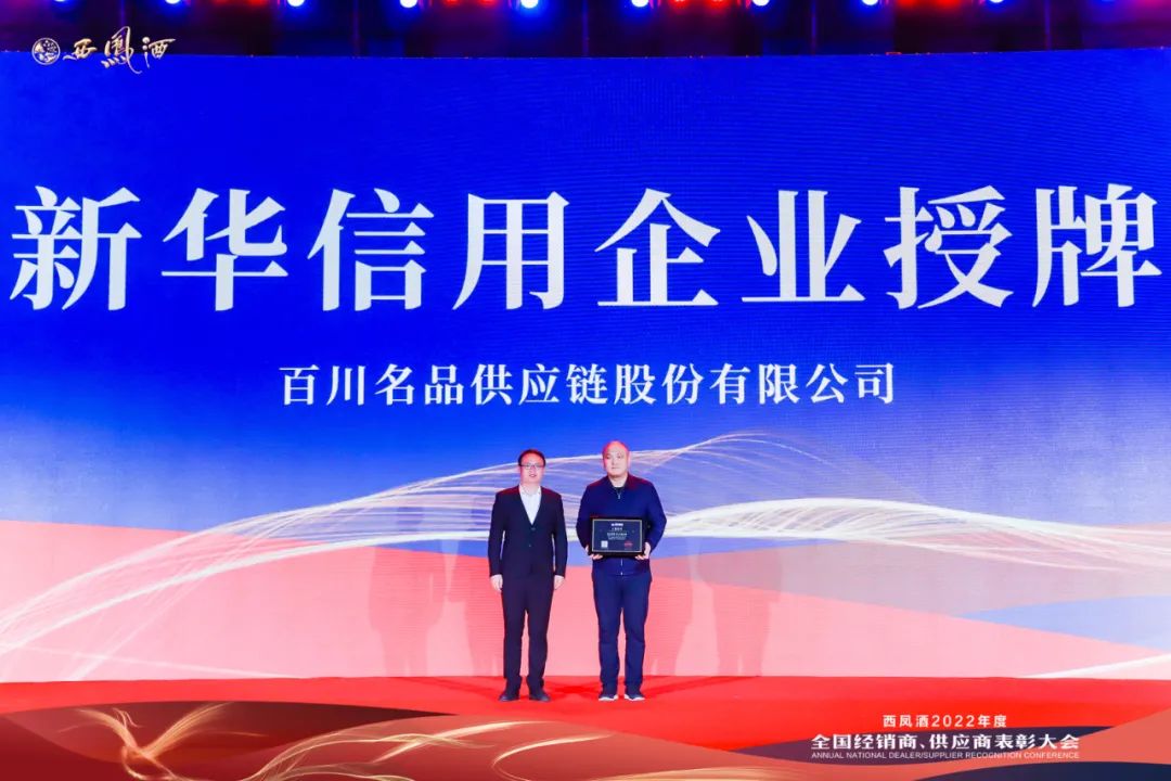 会上,新华社中国经济信息社为百川名品供应链股份有限公司颁发了《新华信用平台入驻企业证书》;新华丝路授予西凤酒“外国人喜欢的中国品牌”荣誉奖杯和证书。