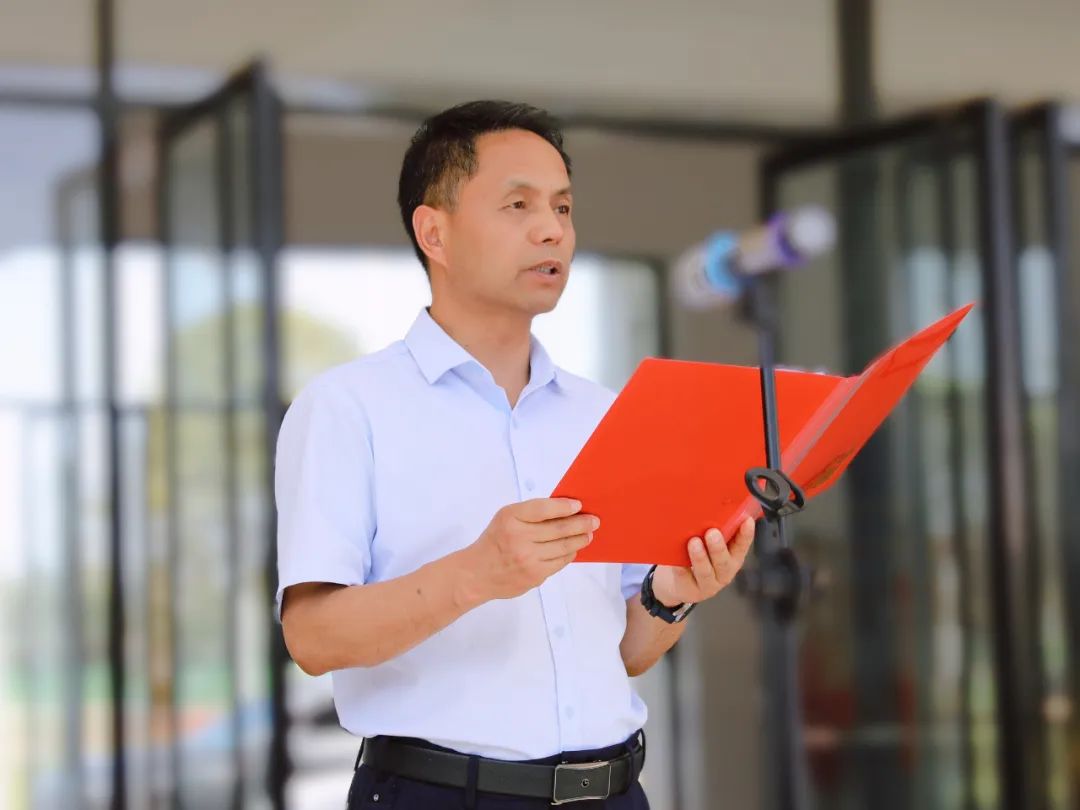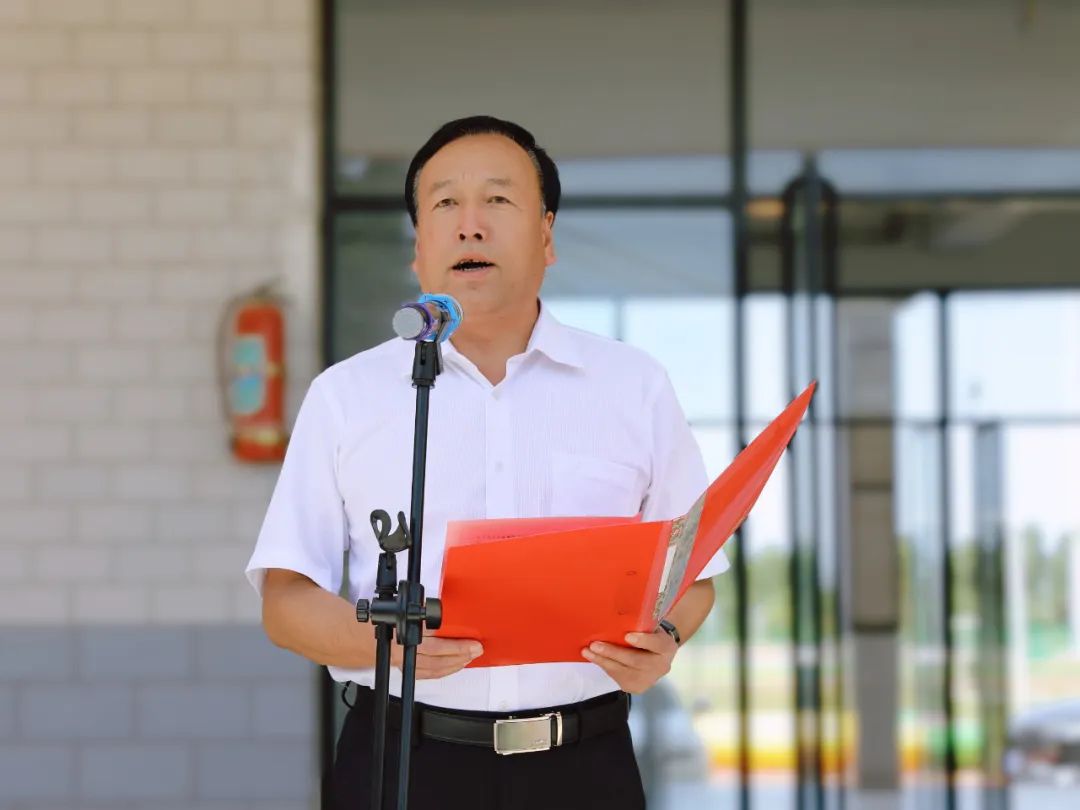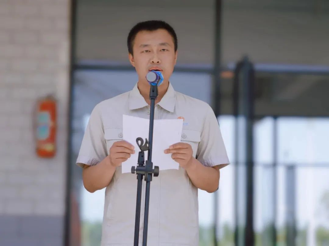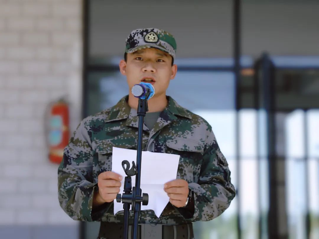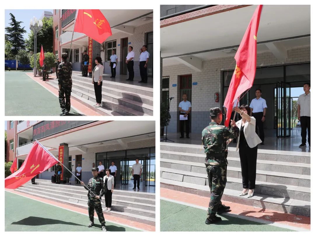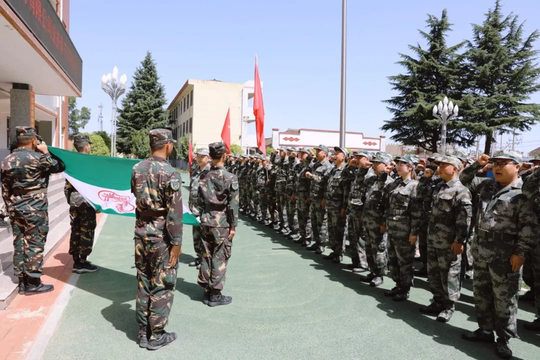 冯雅芳向各参训连队授旗,紫荆山综合实践基地主任曹晋凯致欢迎词,西凤股份公司基酒管理中心主任邢钢宣读军训方案,学员代表沈晓亮作表态发言,全体参训学员庄严宣誓。