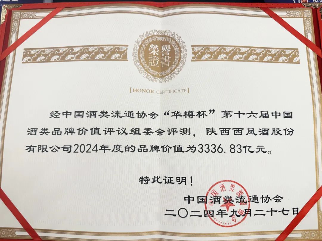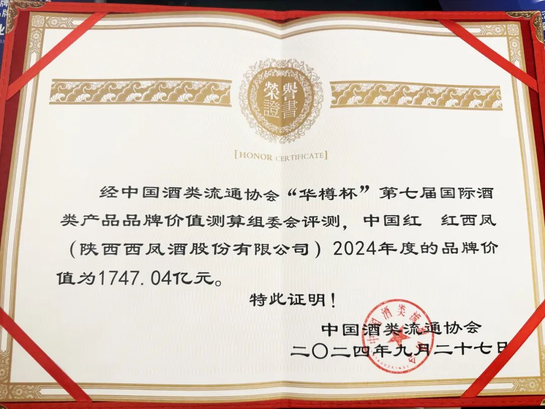 “2024年度华樽杯中国白酒十大匠心品质品牌”和“2024年度华樽杯十大全球影响力白酒杰出品牌”等三大奖项,品牌价值达到3336.83亿元,再创历史新高,强势登顶中国白酒品牌价值榜单前列。中国红·红西凤产品品牌价值飙升至1747.04亿元,受到社会各界一致好评。