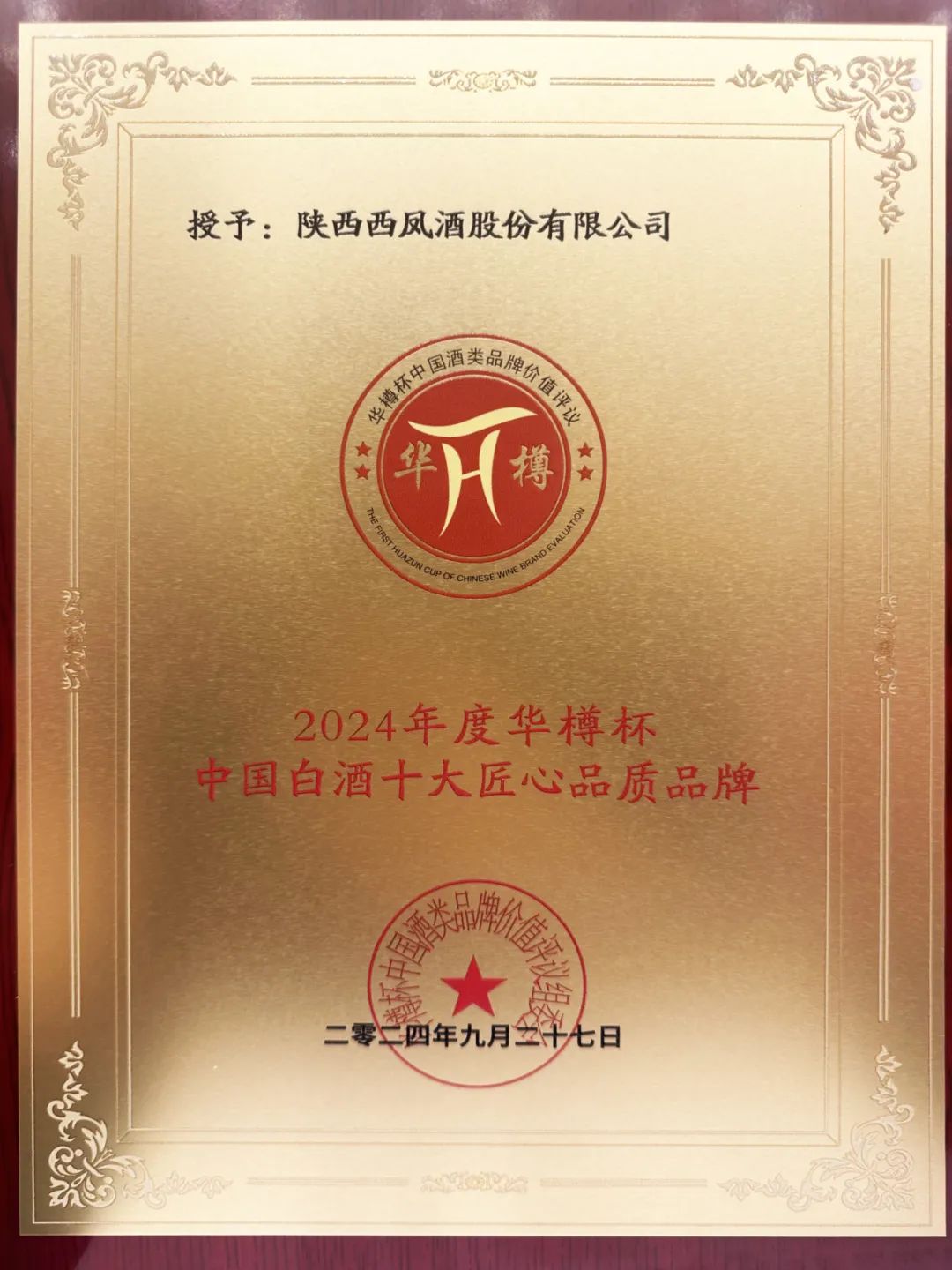 9月27日,“华樽杯”第十六届中国酒类企业品牌价值发布会在北京举行。西凤酒凭借卓越品质、独特品类和一流的品牌实力,荣获“2024年度华樽杯中国酒业新质生产力领导品牌”