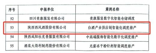 西凤股份公司入选国家工信部2024年“数字三品”应用场景典型案例