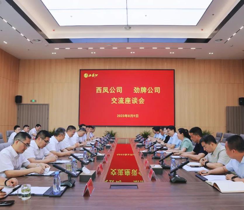 8月9日,劲牌有限公司总裁王楠波一行来西凤股份公司座谈交流。西凤股份公司总经理张周虎,股份公司副总经理周艳花、高亚兰陪同。张周虎讲话张周虎表示,此次座谈交流见证了西凤公司和劲牌公司的良好友谊。近年来,西凤股份公司紧紧围绕“重回一流名酒序列”奋斗目标和“高端化全国化”发展战略不动摇,积极开展管理提升,持续实施精准营销,不断优化产业布局,全力提升品牌高度,推动了西凤事业高质量发展。希望双方在科技创新、
