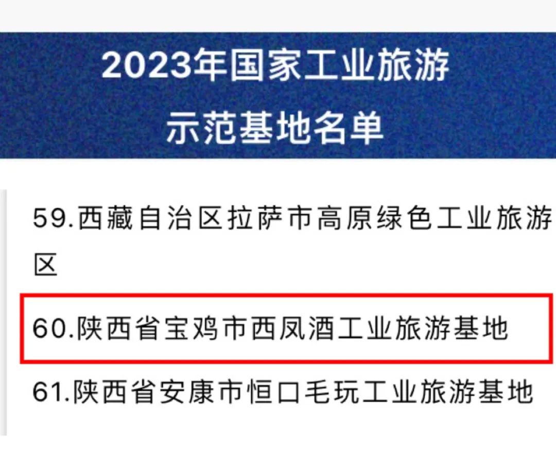 喜讯|西凤公司荣获“国家工业旅游示范基地”