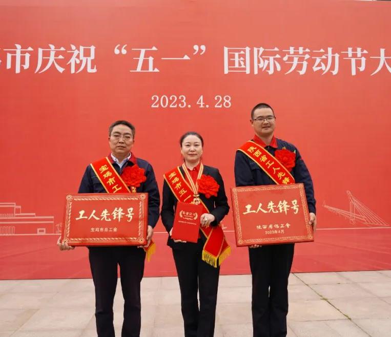 4月28日,宝鸡市庆祝“五一”国际劳动节大会在市工人文化宫隆重召开。会议表彰了全国、省、市五一劳动奖和工人先锋号获得者。市委书记杨广亭参加会议并讲话。市人大常委会主任景耀平为西凤股份公司902车间22组颁发陕西省“工人先锋号”奖牌,西凤股份公司副总经理周艳花荣获宝鸡市五一劳动奖章,市委常委、市纪委书记、监委主任张礼进,市委常委、市政府副市长时镇为西凤股份公司701车间颁发宝鸡市“工人先锋号”奖牌。景耀平为