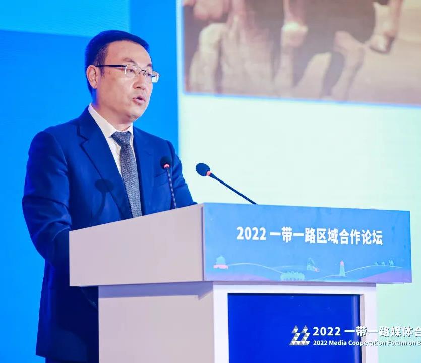 西凤集团公司党委书记、董事长张正在2022“一带一路”区域合作论坛上作《汇聚开放互通之共识,传递民族企业之强音》的主旨发言。