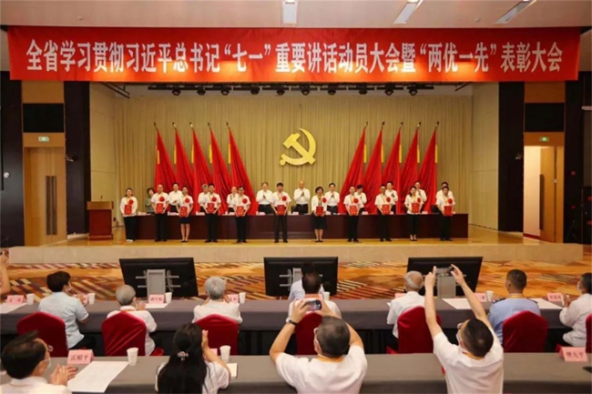 7月5日上午,在陕西省学习贯彻习近平总书记“七一”重要讲话动员大会暨“两优一先”表彰大会上,西凤集团公司党委被授予“全省先进基层党组织”,受到大会表彰。