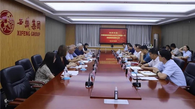 7月6日,中国酒类流通协会会长王新国带领常务副会长刘员、副秘书长赵禹等一行7人来西凤集团公司考察调研,西凤集团公司党委书记、董事长、股份公司董事长张正,副董事长、总经理贾智勇,副总经理周艳花,高洪涛,总工程师王科岐,副总经理、董事会秘书张周虎,副总经理肖宁陪同调研。