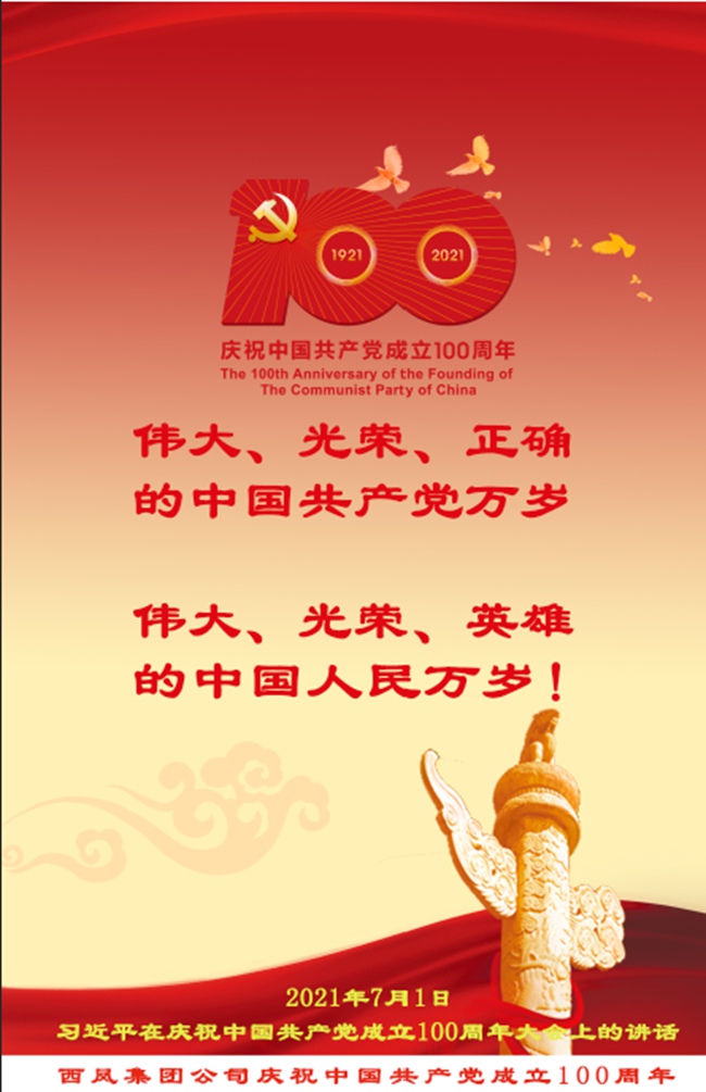 和风舞动,百花娇艳,红旗招展。在这举国欢腾同庆的重大时刻,我们欣喜的迎来了中国共产党100周年华诞,衷心祝福伟大的党——生日快乐!在此,西凤集团公司党委谨向奋斗在公司各条战线上的全体共产党员和党务工作者,致以热烈的节日问候!