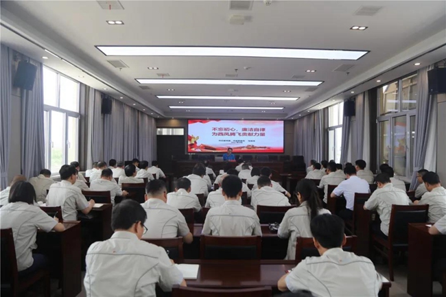 6月11日下午,西凤集团公司纪检监察业务培训暨廉洁从业教育主题党课在办公楼五楼会议室召开。宝鸡市纪委常委、监察委员会委员,二级调研员,市委党校特聘教授马宝峰作了题为《不忘初心,廉洁自律,为西凤腾飞贡献力量》的专题党课。西凤集团公司纪委书记、监察专员帖树红主持会议,各党(总)支部书记、各部门负责人、各党支部纪检委员共70余人参加了本次会议。