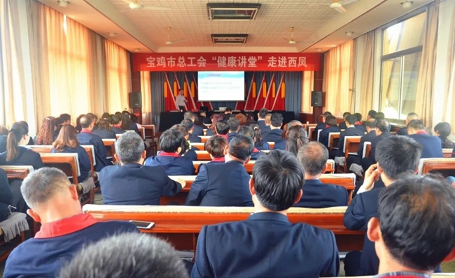 5月15日,宝鸡市总工会组织带领宝鸡市中心医院、宝鸡市中医医院资深临床专业医师来西凤集团公司,在办公楼五楼会议室举办了一场别开生面的“健康讲堂”。各分会110多名职工代表聆听了讲座。西凤集团公司工会主席陈军红主持活动。